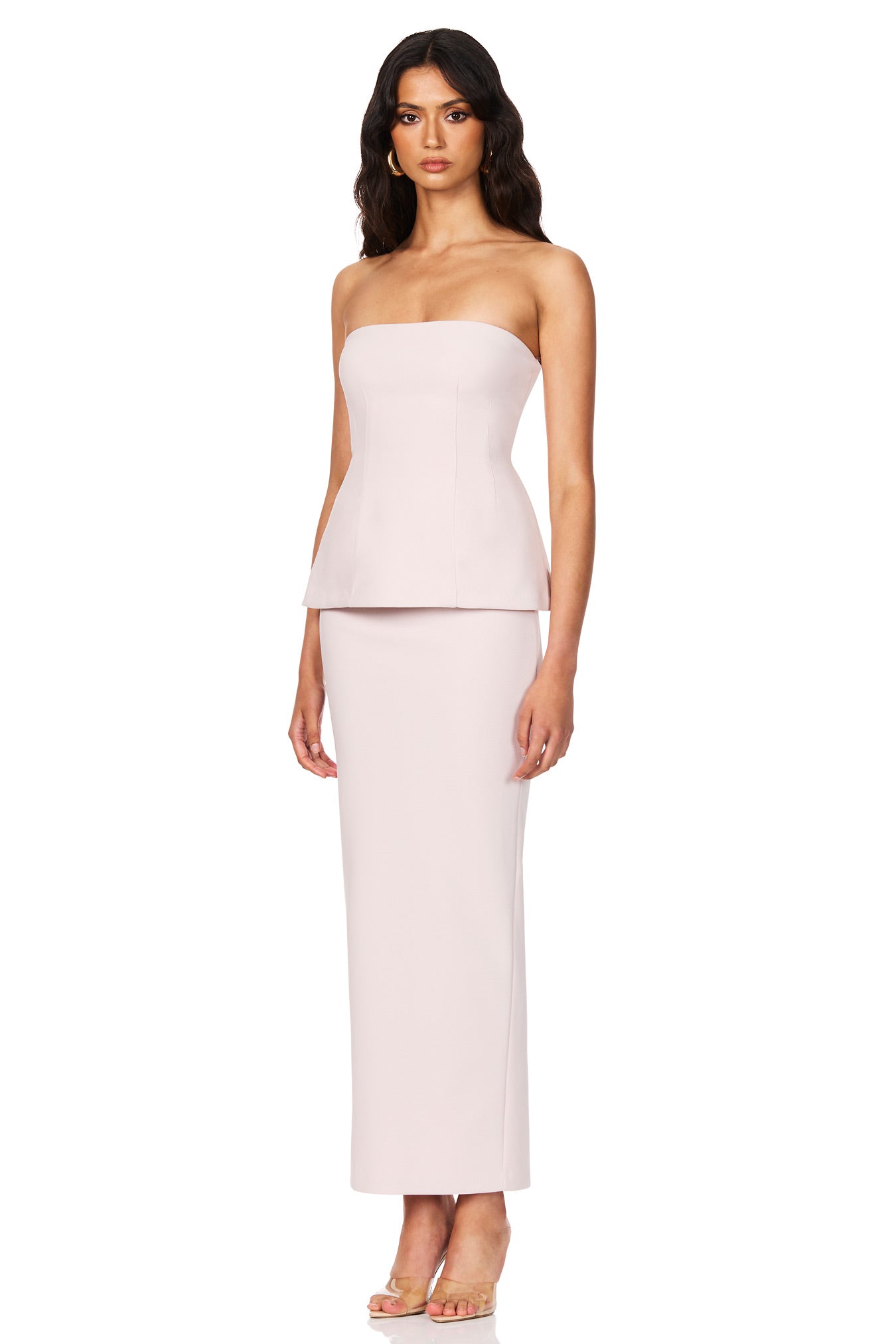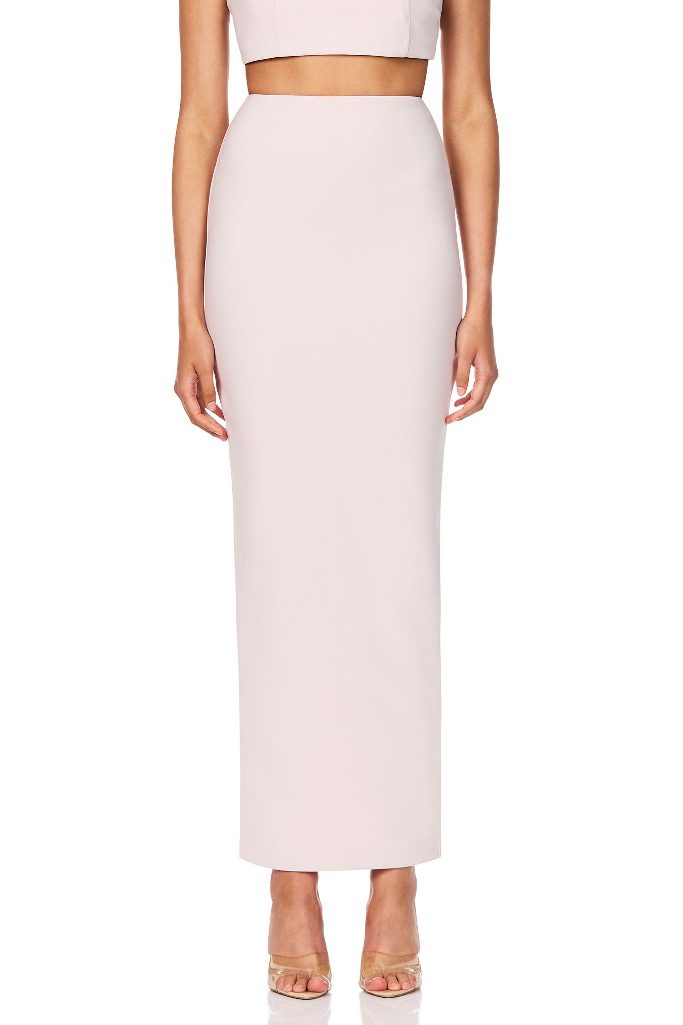 The Nookie Caroline Maxi Skirt is a classic high waisted pencil maxi skirt, with a split at the back hem and an invisible zip at the waist. It is crafted in our stretch bonded crepe and is fully lined.