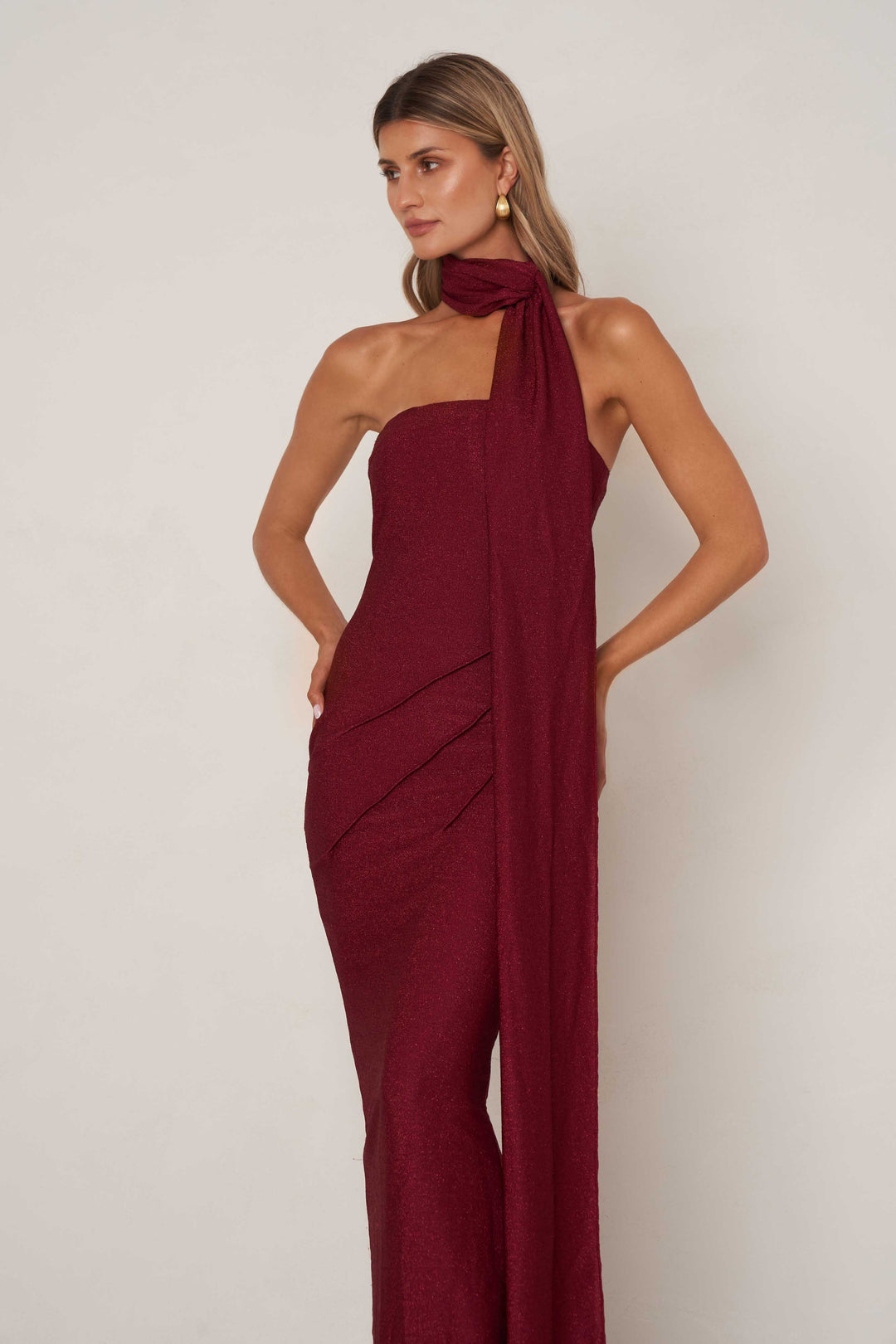 This strapless high stretch maxi features an elegant sash. The Gabriella Dress can be worn with or without sash for two different looks. Also available in Marine green
