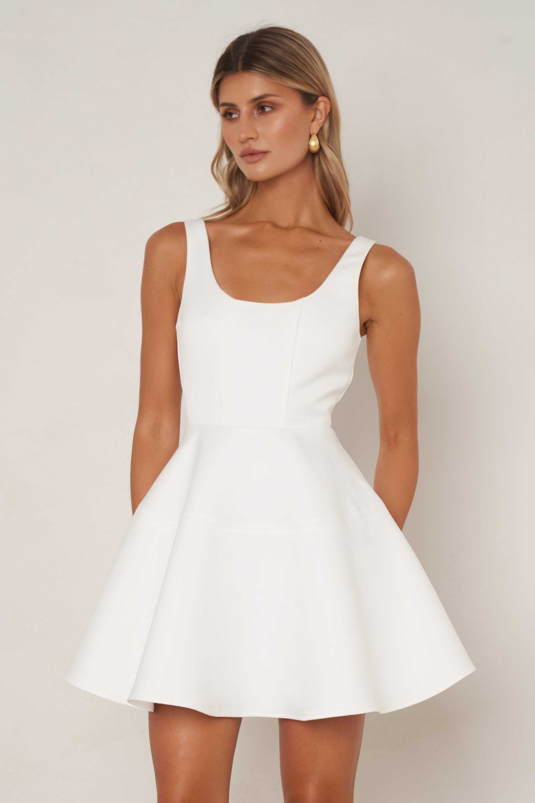 This gorgeous mini dress features a scoop style neckline & fun floaty skirt. The tulle sewn under the skirt creates the perfect fullness. Designed using a thick satin fabrication, this dress is sure to turn heads.