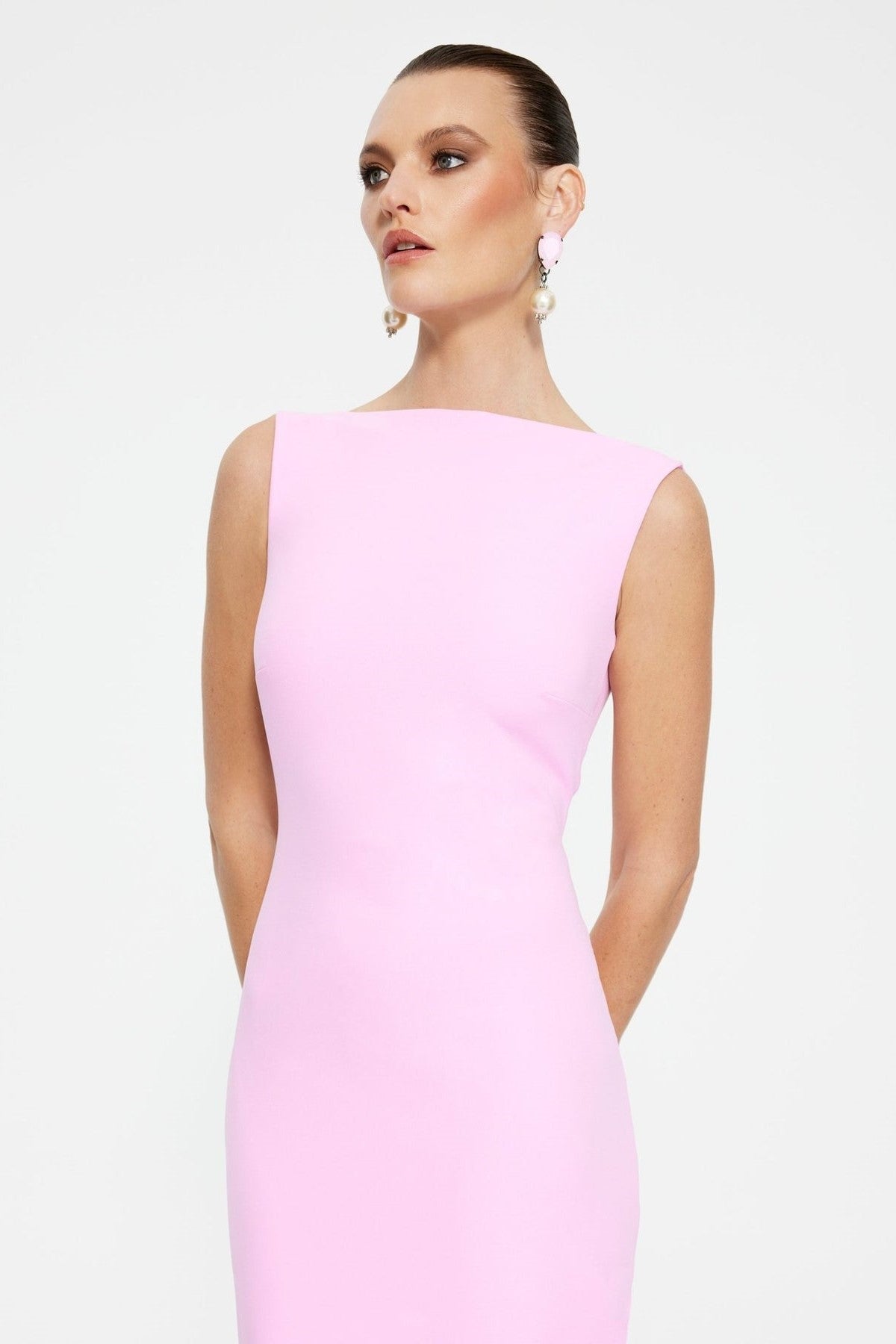 The Effie Kats Verona Gown is so evocative of '90s glamour. Made from luxurious stretch-crepe, it has the decade's defining high neckline and simplistic silhouette. Complement the gown with a statement earring and hand held clutch.