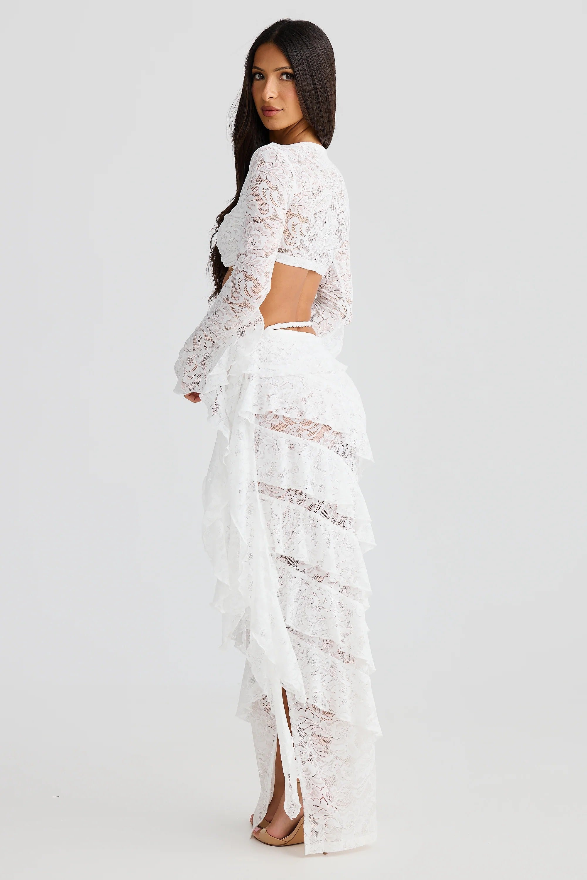 CECILIA is everything you want her to be. She's classic, lightweight and pairs beautifully with our range of lace bottoms. She features floaty ruffle sleeves, sweetheart detailing and MÉLANI'S signature hand crafted rope detailing.