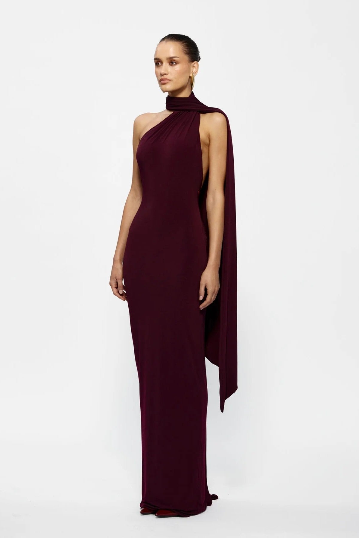 A striking blend of detailed design and timeless elegance, we welcome the Haven Dress. Crafted from our classic stretch jersey that softly drapes and cinches the figure. Detailed with an asymmetrical halter neckline that seamlessly cascades into a ruched waist. The Haven is beautifully balanced with a alluring open back and a train detailing. Made for those who desire quiet and understated luxury, the Haven is a perfect expression of feminine beauty and modern elegance.