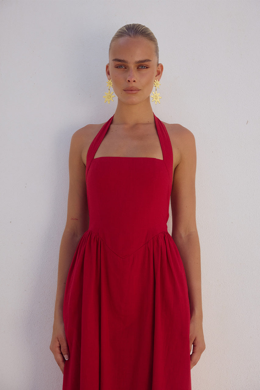 With a fitted bodice and halter neck our Lock Midi Dress is your perfect summer dress, that can be dressed up or down.