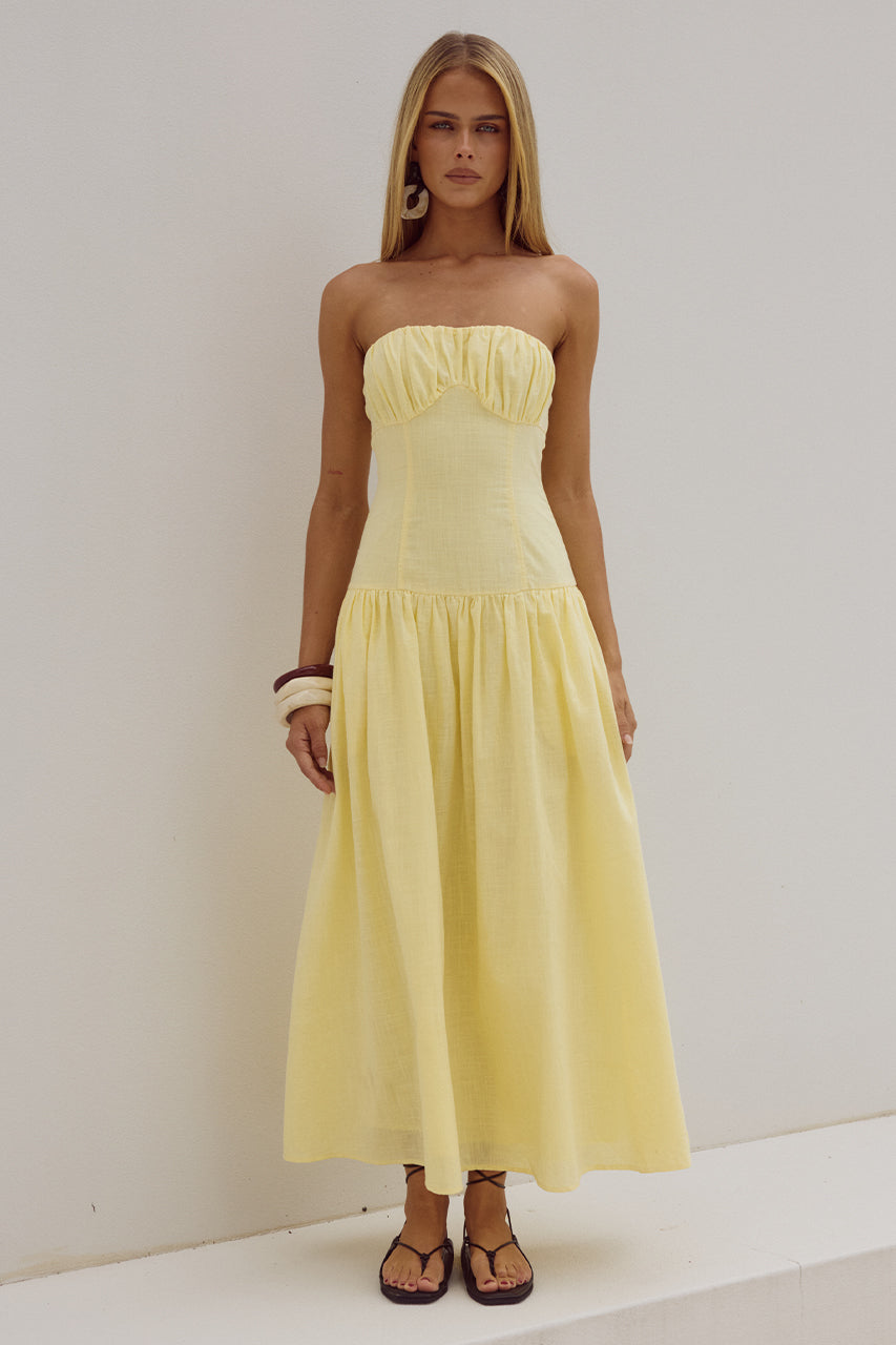 With an elegant drop waist and ruching, our Poppy Midi Dress is chic and understated.