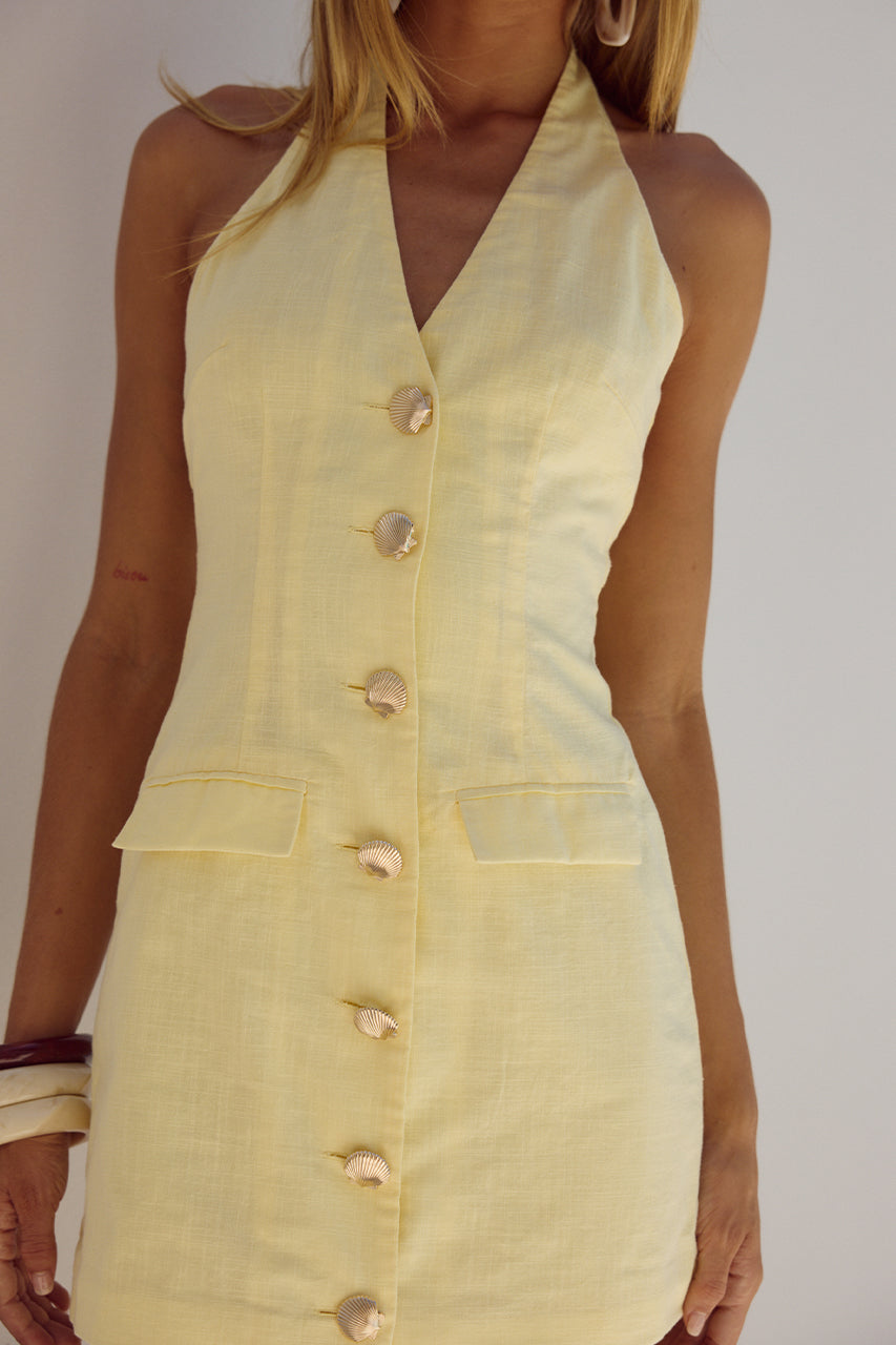 Our Halzie Mini Dress is the perfect balance of structure and edge, with a suiting inspired silhouette and low open back.