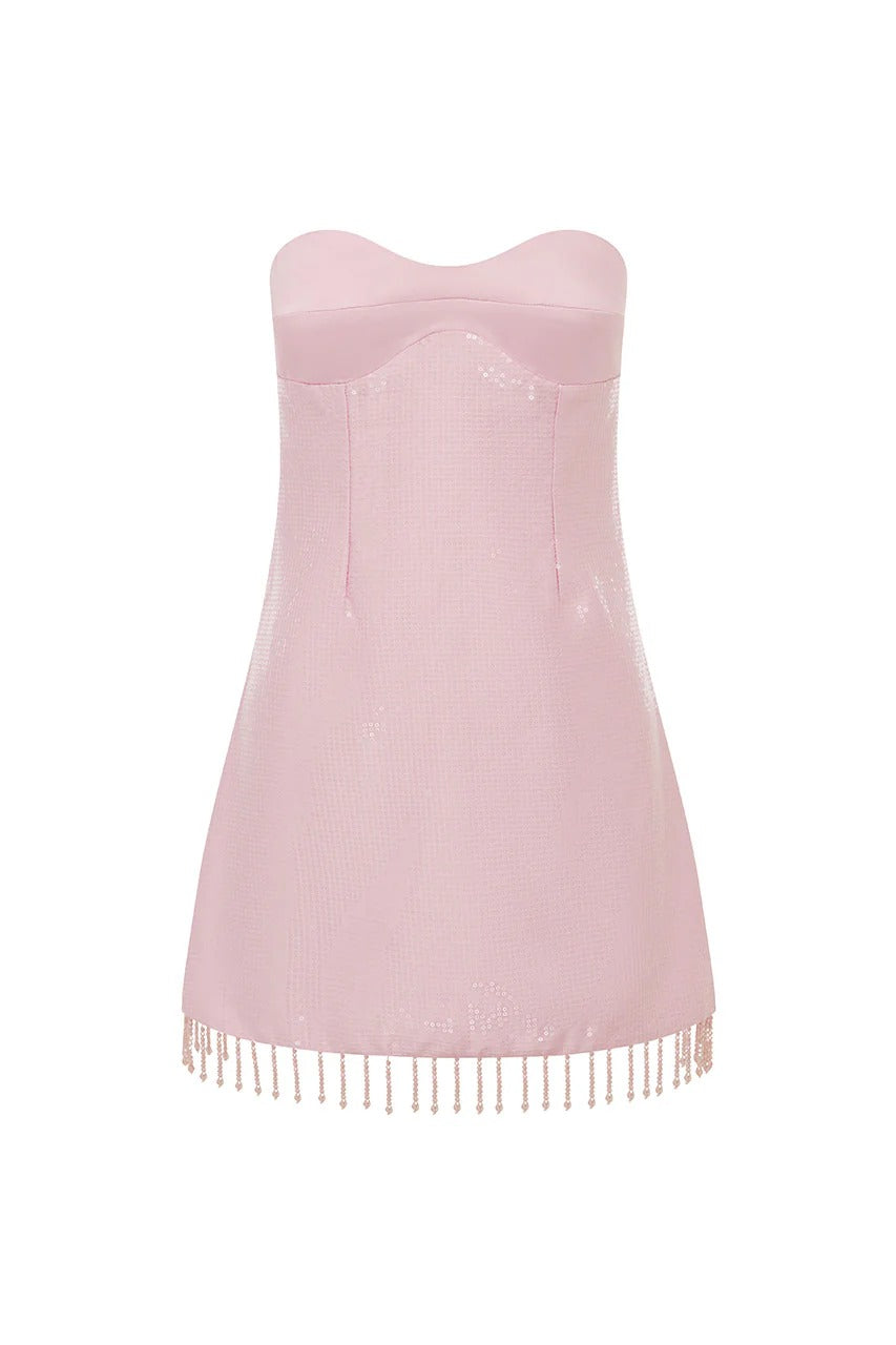 Made for a night out with the girls, our Medina Strapless Mini Dress features a sequined bodice and beaded trim, highlighting fun femininity.