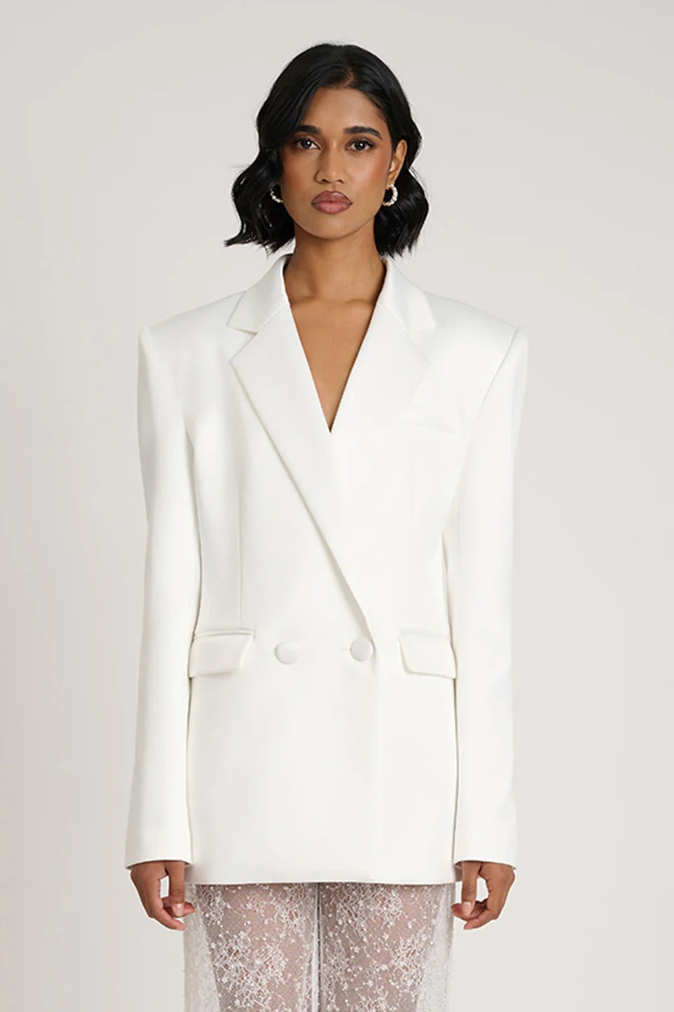 Featuring a double-breasted design, the Elliot Blazer showcases one functional button, complemented by an internal button for an added touch of refinement. Front functional pockets add practicality while maintaining the blazer's chic aesthetic.