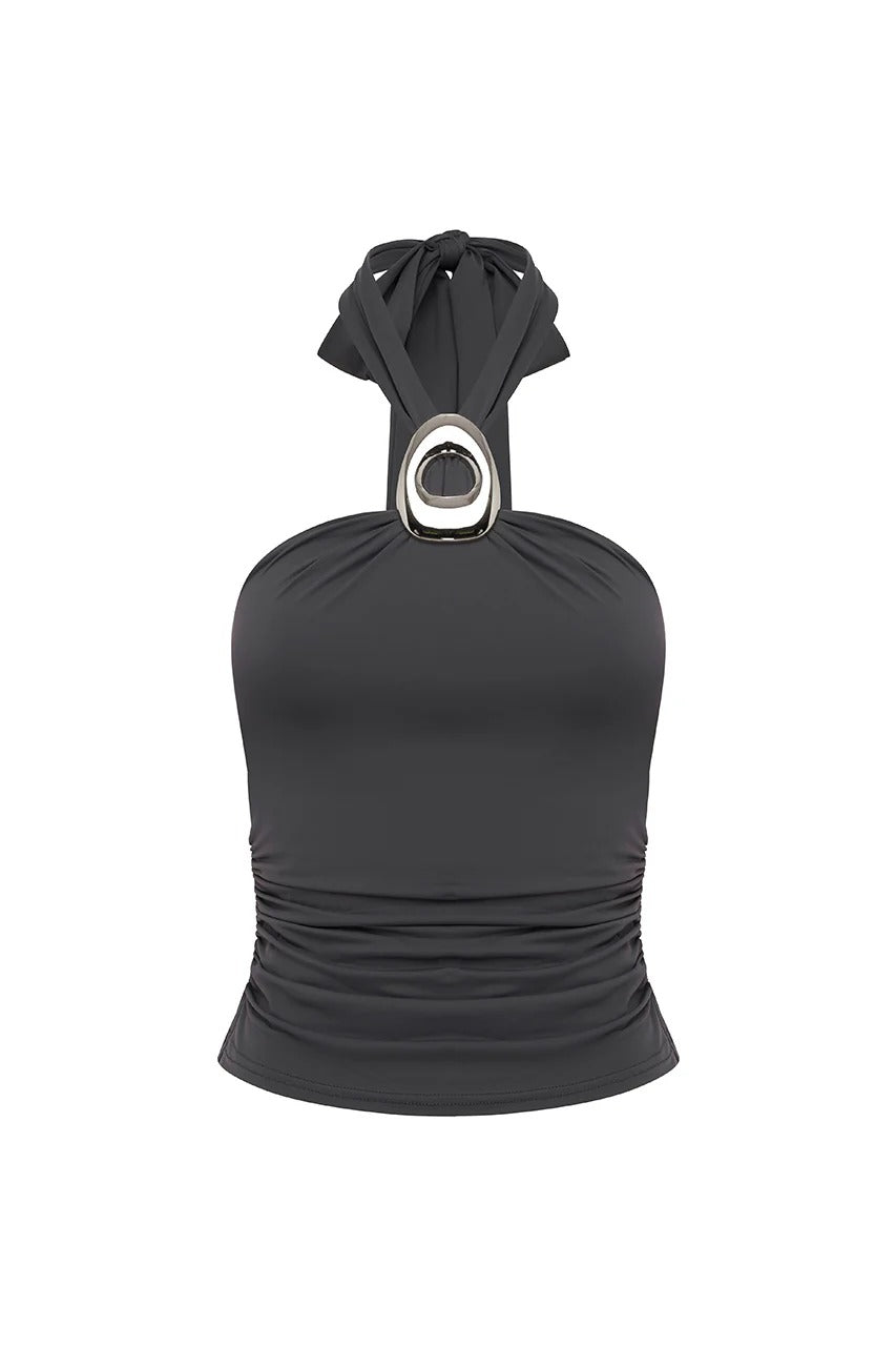 Crafted from a luxe body-con fabric with bold silver hardware, our Indiana Halter Top will give you the ultimate cool girl look, pair with our Indiana Maxi Skirt for the complete look.