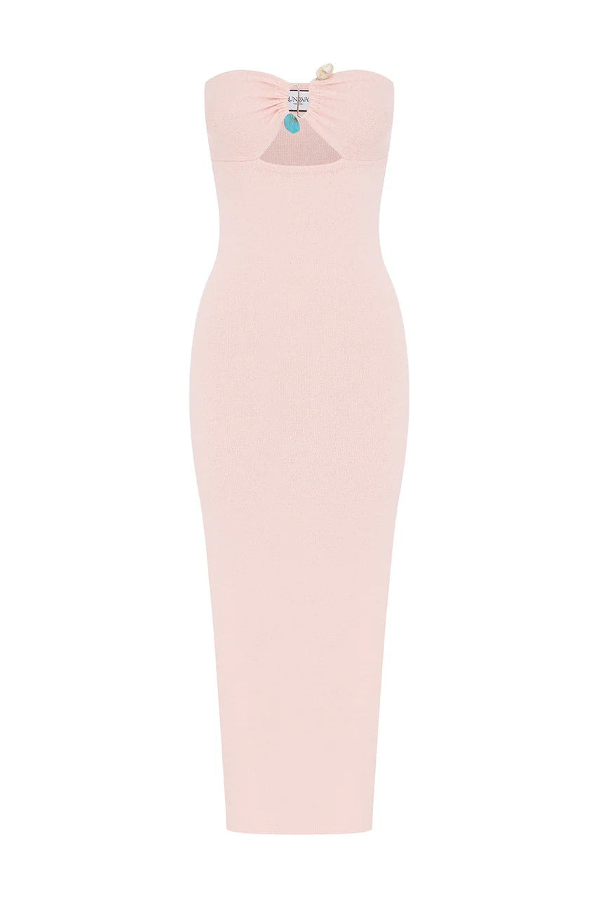 Crafted from a luxe knit in a feminine hue, our Luna Midi Dress features resin details and a side split, perfect for sunny walks on the beach or a lunch date.