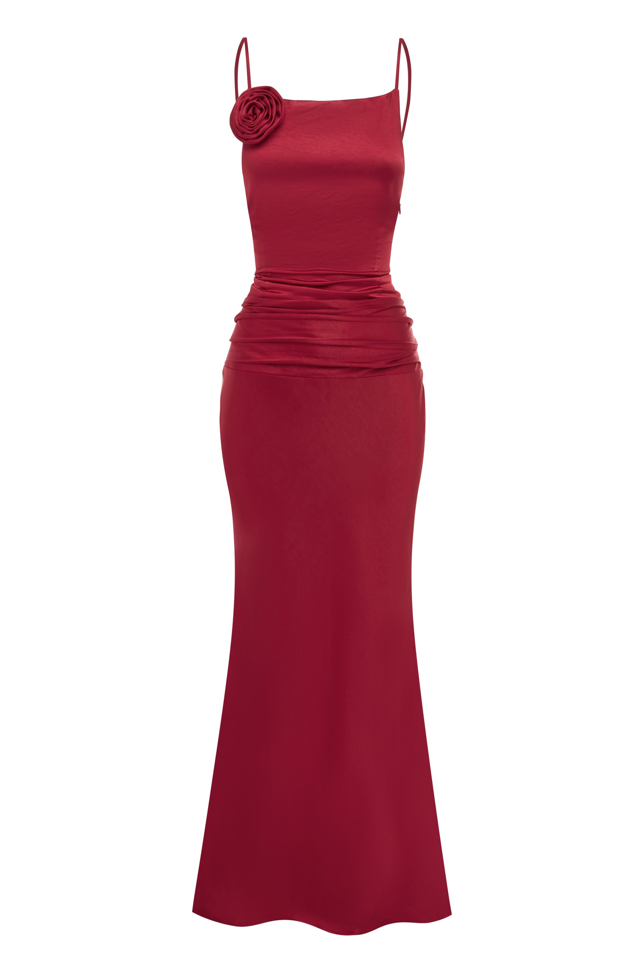 With a tie up back and high neck with rosette appliqué, our Piani Maxi Dress is the perfect balance of sweet and sultry.