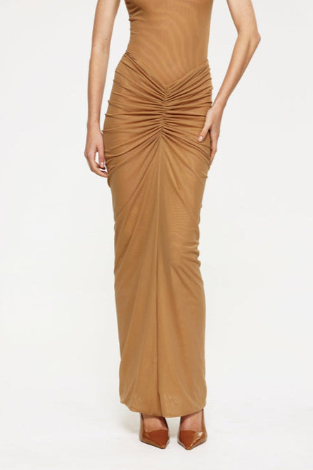 The Pilar Maxi Skirt skirt is artfully gathered through the middle to create an exaggerated ruching effect. It's made from double layered sheer mesh and sits comfortably on your natural waist. Wear it with the coordinating - and equally statement-making - top.