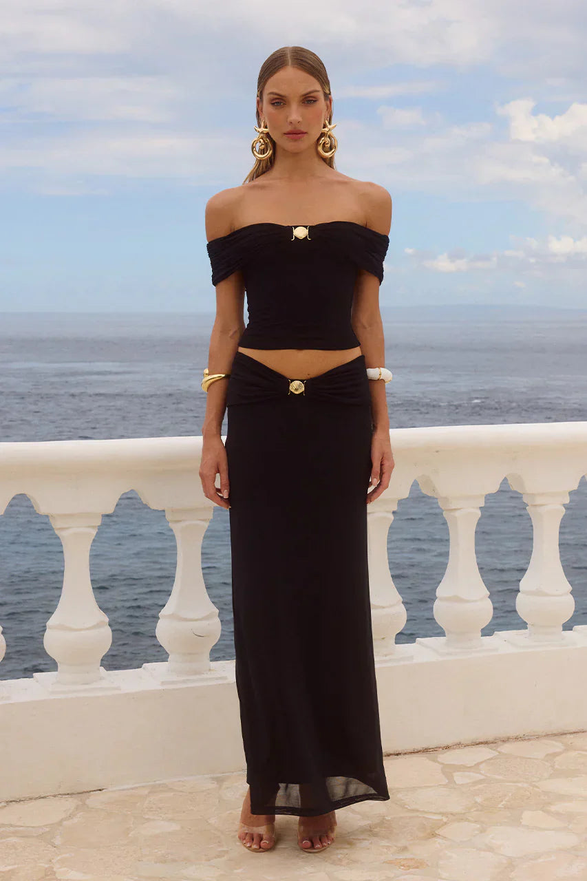 A feminine blush tone and seashell hardware, our Rikki Maxi Skirt is fun and light, pair with our Rikki Top for the complete look.